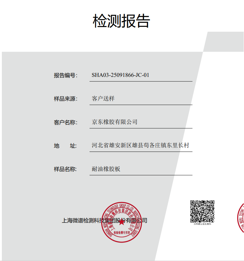 京東橡膠耐油橡膠板檢測(cè)報(bào)告