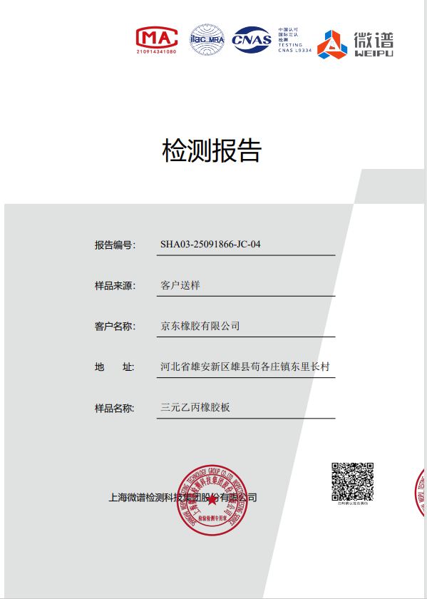 京東橡膠三元乙丙橡膠板檢測(cè)報(bào)告