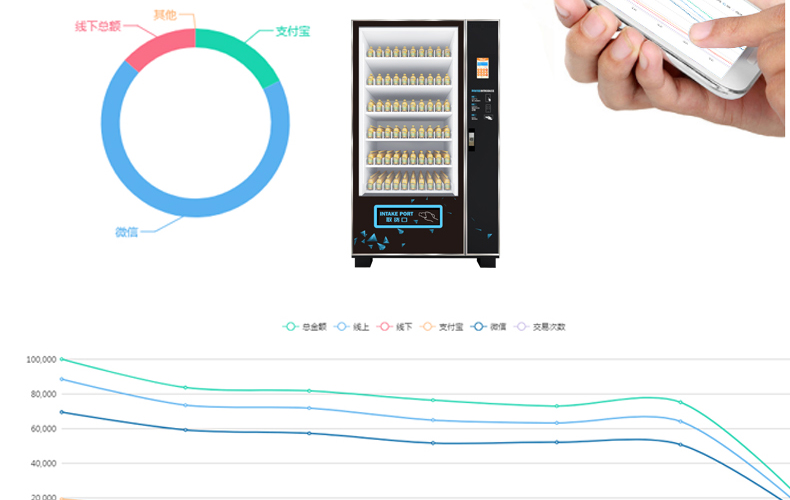 雙凱自動售貨機已經支持微信支付寶掃碼支付功能,并廣受消費者歡迎,極力促進了自動售貨機的營業額增長。
